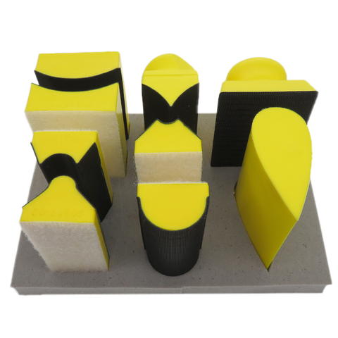 9ピース/セットイエローPUハンドサンディングブロック研磨工具用混合形状フックとループハンドパッドカーメタル家具詳細研磨